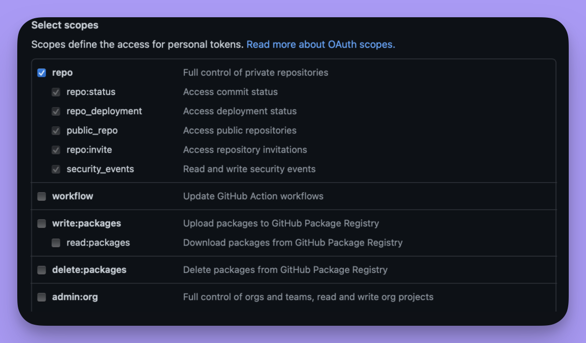 Project read and Repository read scope when you’re creating the token.