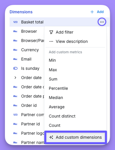 In this example, let’s explore theorders table and create a custom dimension that categorizes my orders’ totals into three categories: low, medium, and high.