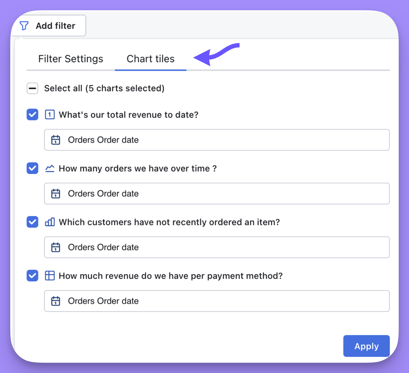 Adding filters to your dashboard