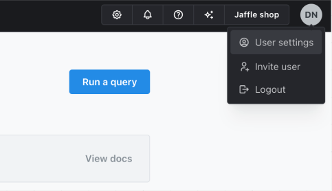 - Sign into your Lightdash instance, click your initials at the top-right, and select User Settings.