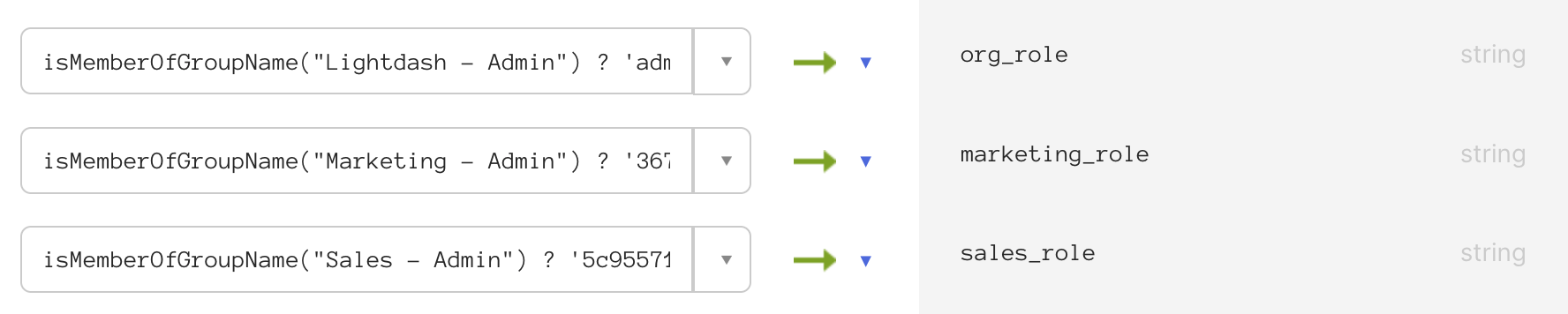 /Roles, use the manual configuration documented in your IdP. Remember: only the value is required by Lightdash.